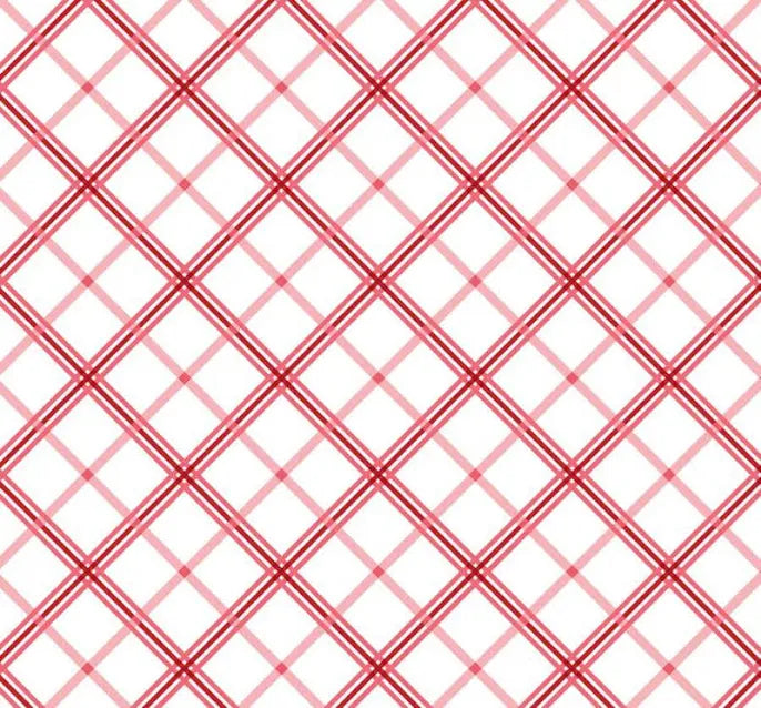 Kimberbell Basics Refreshed is a collection by Kim Christopherson for Maywood Studio. This white fabric features red diagonal plaid in three different shades.