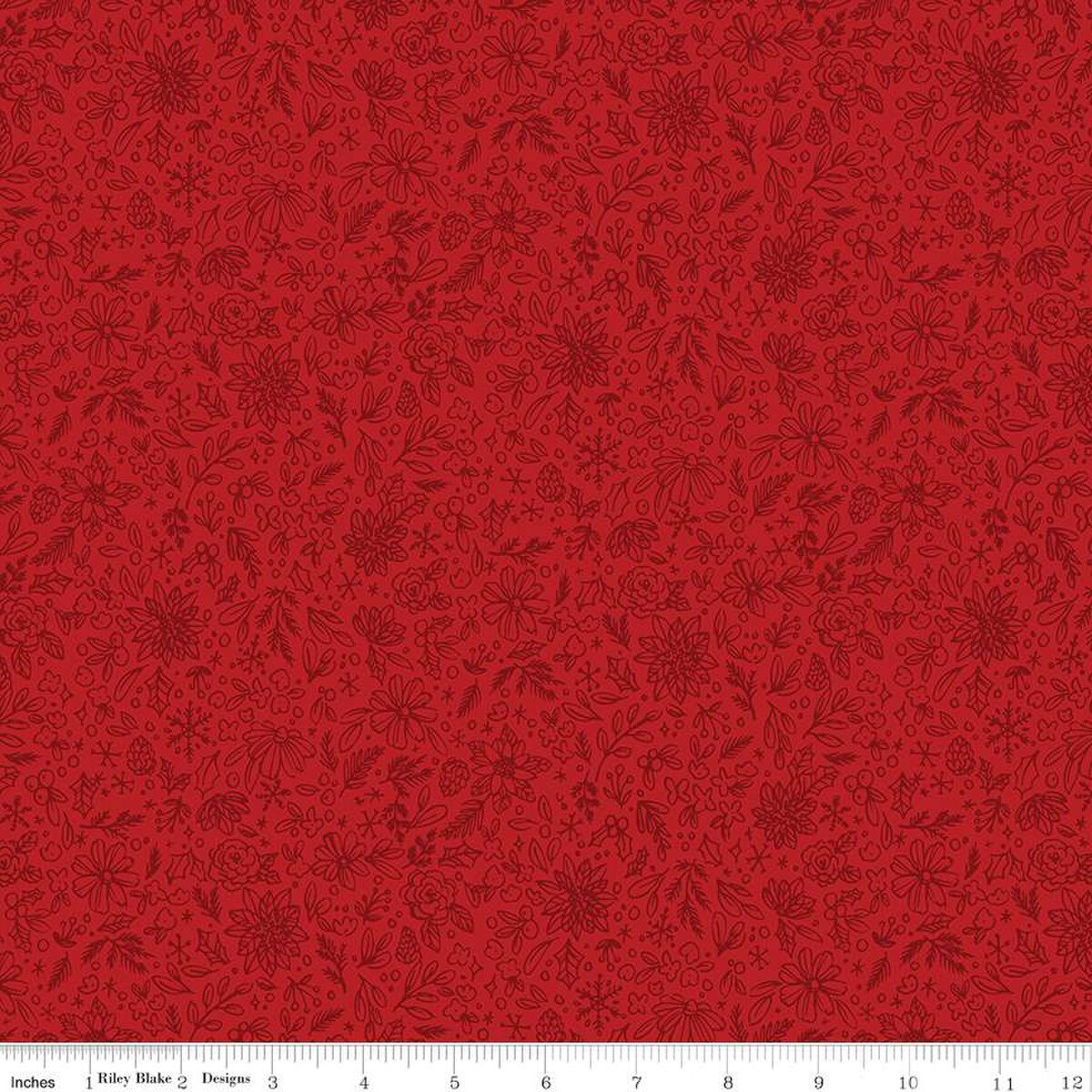 Charming Christmas - C16354 - Red Floral Outline - by Kelsey Carlson for Riley Blake