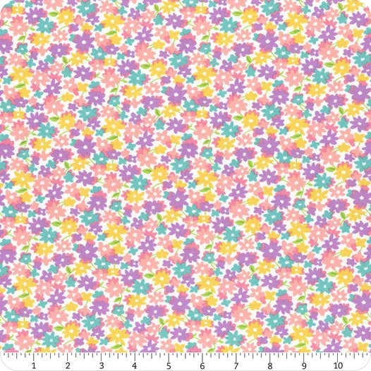 Get your groove on with this collection by Me & My Sister! On The Bright Side is a fun and radiant collection full of retro styles. With Blooming florals, amazing polka-dots and stripes, this collection also has bright eye-catching hues! Pair these prints with the coordinating Bella Cottons Solids from Moda Fabrics for some spectacular projects!