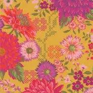 Parlor by Crystal Manning for Moda Fabrics is a vibrant and bohemian-inspired quilting fabric collection that brings bold energy and eclectic charm to any project. This stunning floral fabric design features vibrant pink and purple flowers on a golden yellow background.