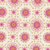 Parlor by Crystal Manning for Moda Fabrics is a vibrant and bohemian-inspired quilting fabric collection that brings bold energy and eclectic charm to any project. This captivating fabric features a repeating floral pattern with circular designs in pink, yellow, and green on a cream backdrop.