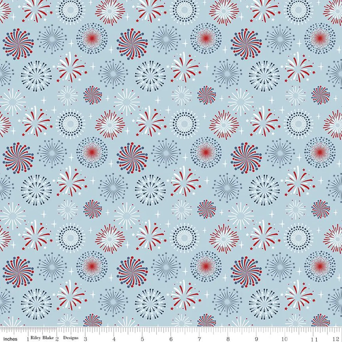 Riley Blake, Stars and Stripes Forever by Lori Whitlock, Sky Fireworks, C15711-Sky, 100% Quilting Cotton Fabric
