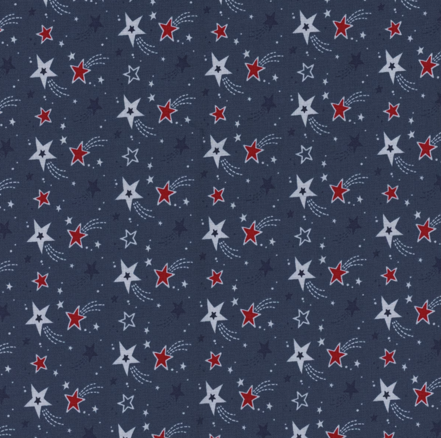Get ready for summer with the Stars and Stripes Forever quilting fabric collection by Lori Whitlock for Riley Blake Designs! This blue fabric with red, blue, and navy shooting stars will make a wonderful coordinating fabric for any summer project.