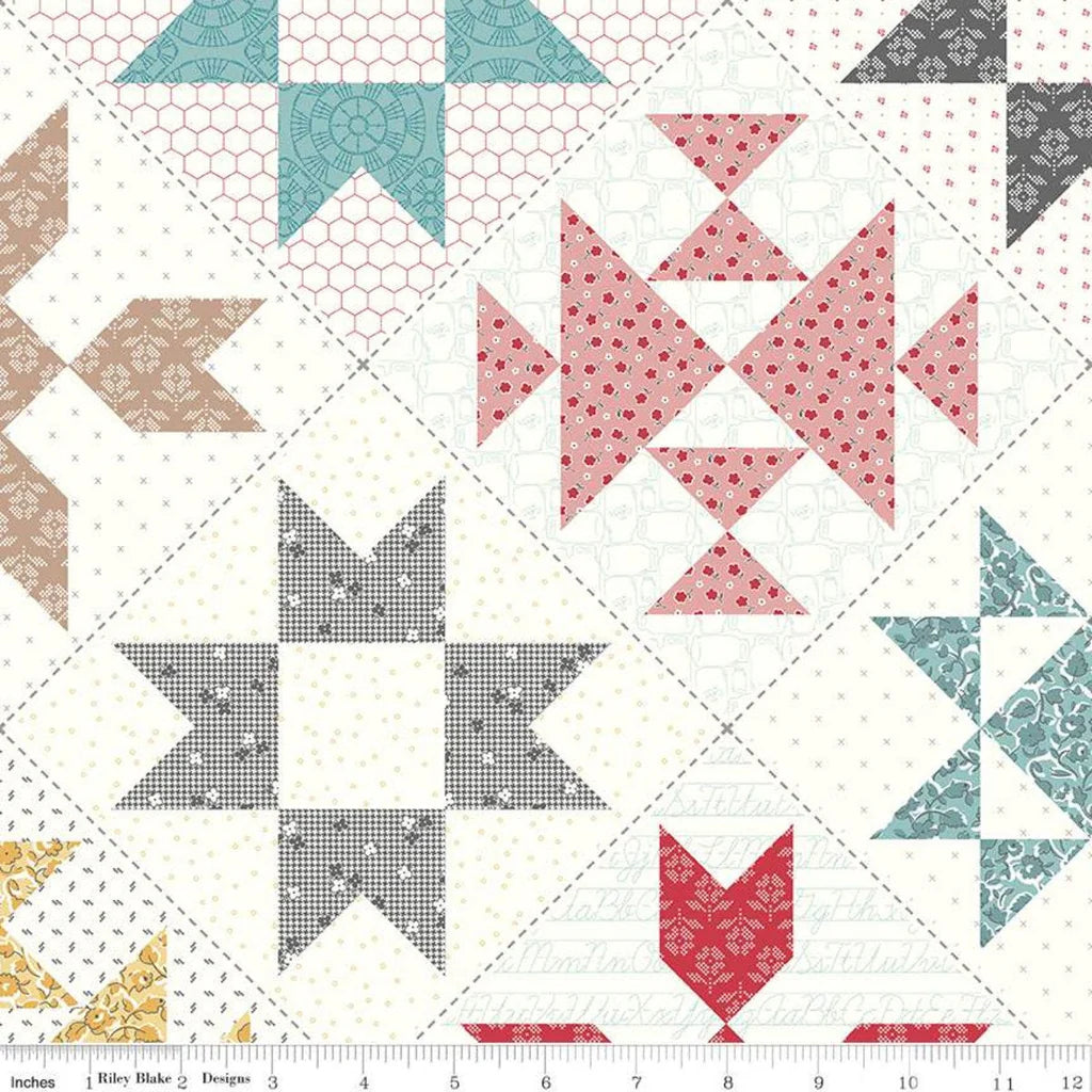 Stitch by Lori Holt of Bee in my Bonnet for Riley Blake Designs is great for quilting, apparel and home decor. This print features quilt blocks with low volume backgrounds set on point and separated by a dashed line.