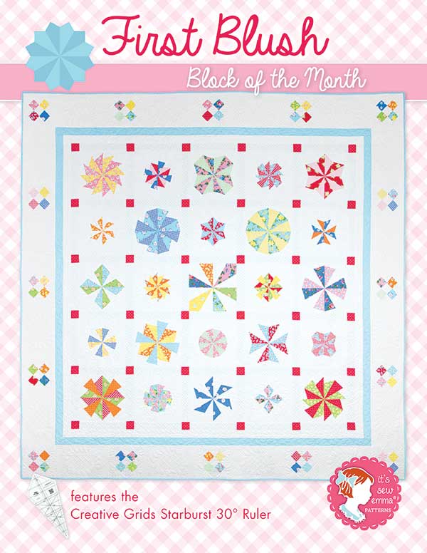 Create an array of blocks featuring our First Blush Block of the Month Book! Intricate blocks are simplified by using our new Creative Grids Starburst 30 degree triangle ruler. This beautifully illustrated book will walk you through each step with stunning results.