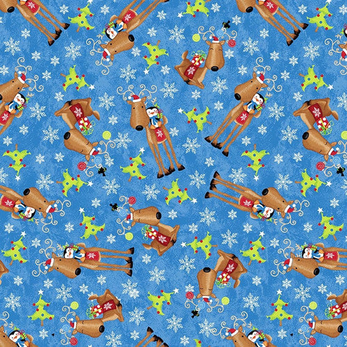 A Jolly Good Time Tossed Reindeer Blue - 7857-17 - by Victoria Hutto for Studio E