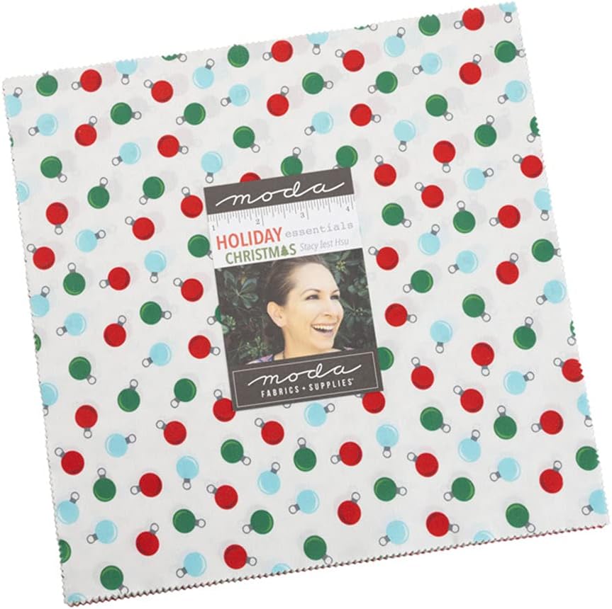 The Holiday Essentials Christmas Layer Cake contains a selection of 10" x 10" precut fabric.