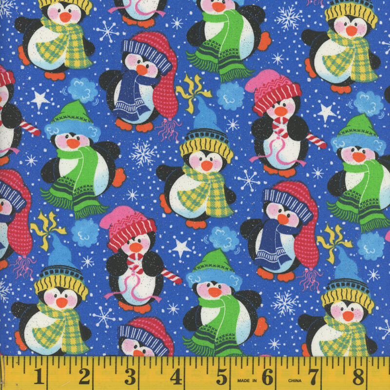 Christmas Penguins Tossed - Blue glitter - 17908 BS