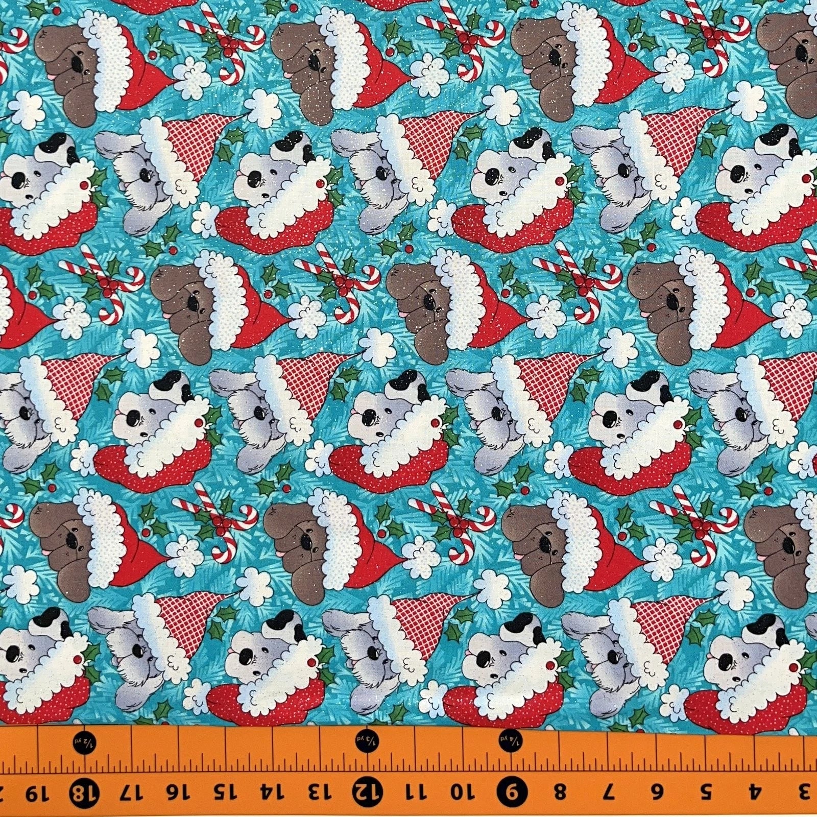 Christmas Dog with Santa Hats Tossed - Blue Glitter - 17916 ES for Fabric Traditions