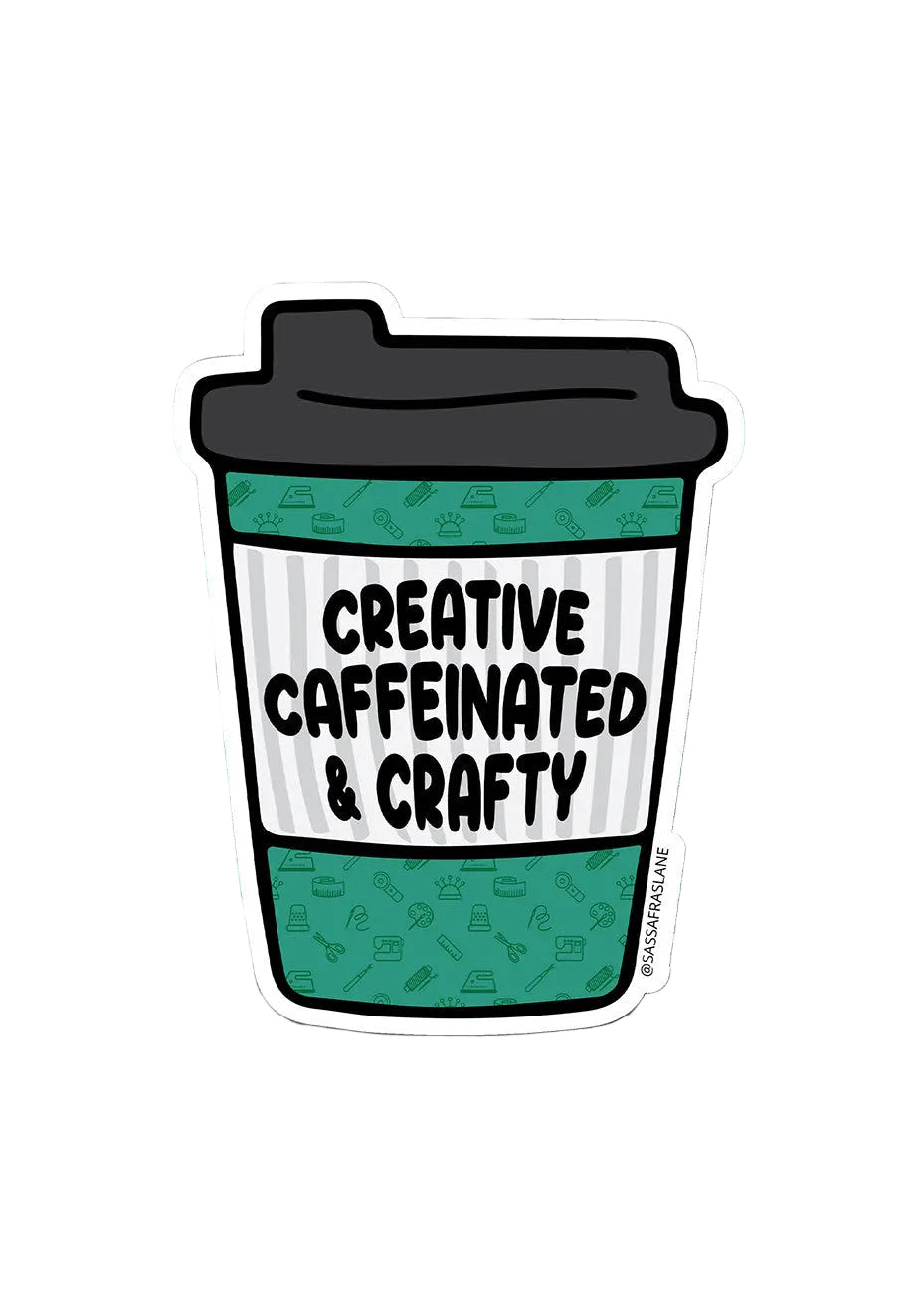The Creative, Caffeinated & Crafty Coffee Sticker is a to-go coffee cup for all your creative, caffeinated & crafty friends. All our die cut stickers are made of a thick durable vinyl with a protective laminate coating.