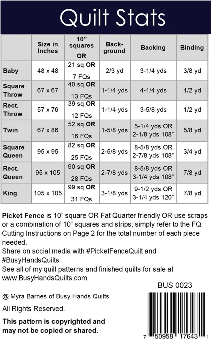 Picket Fence Quilt Pattern by Myra Barnes / Busy Hands Quilts