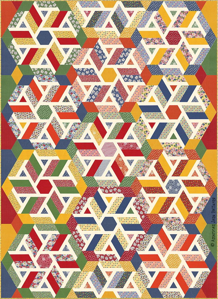 As the power of three combine into one, work becomes play and opens up joy to this very day! This quilt was made using American Jane fabric for Moda Play All Day. The finished project size is 63" x 87".