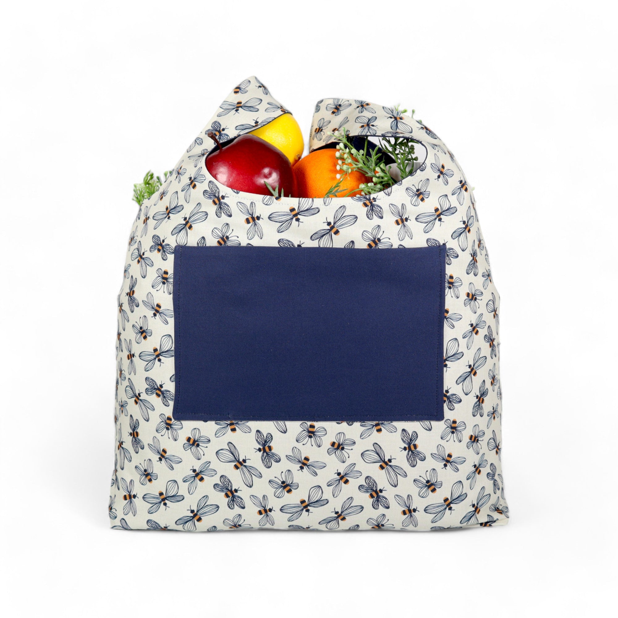 Now you will always have a stylish shopping bag handy! These bags are designed to fold up into the pocket so you can toss them in your purse and take them anywhere. The lining not only adds strength, but also means no exposed seams and makes the bag reversible. One trip to the market and everyone will be asking where you got your bag!