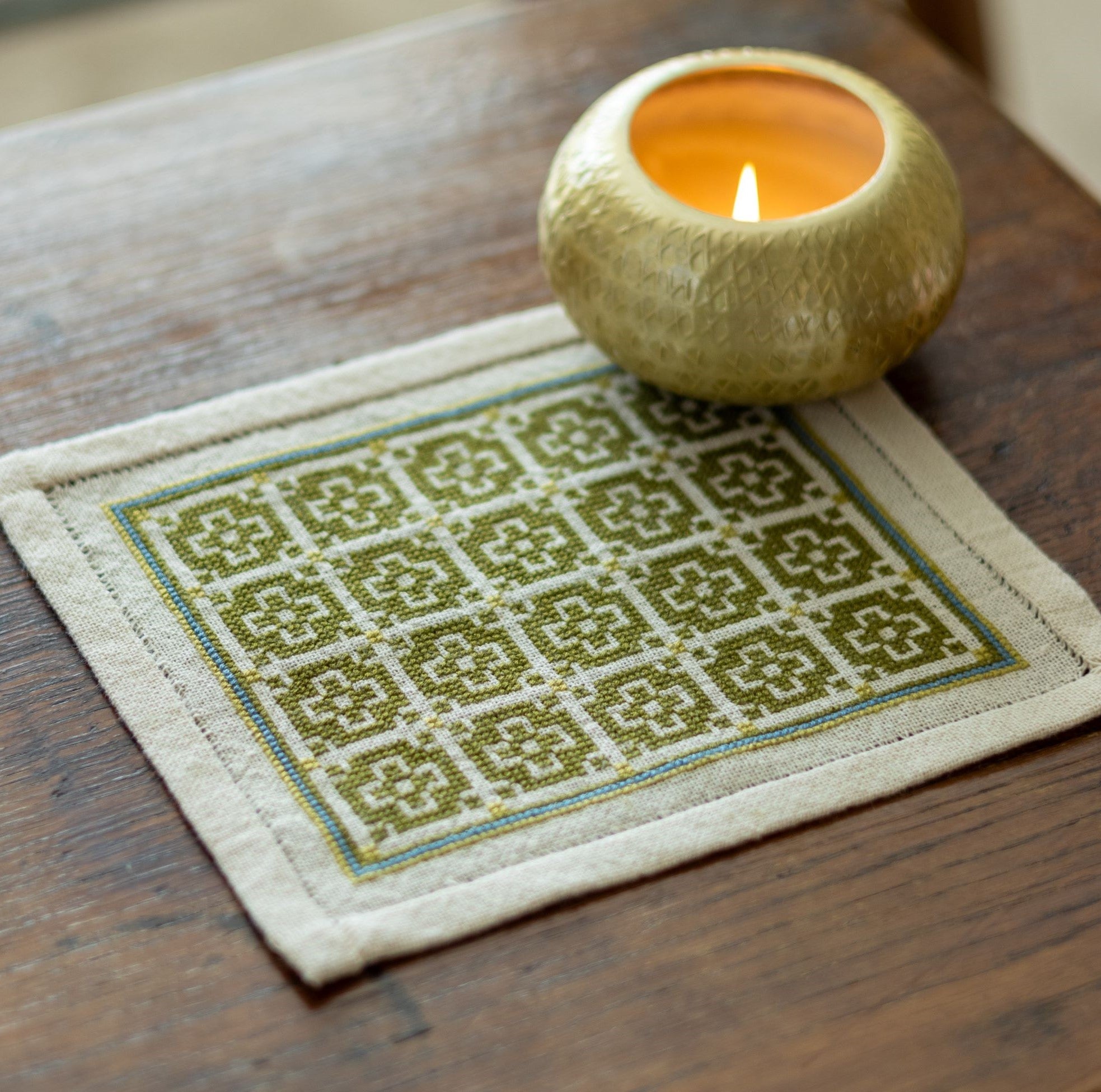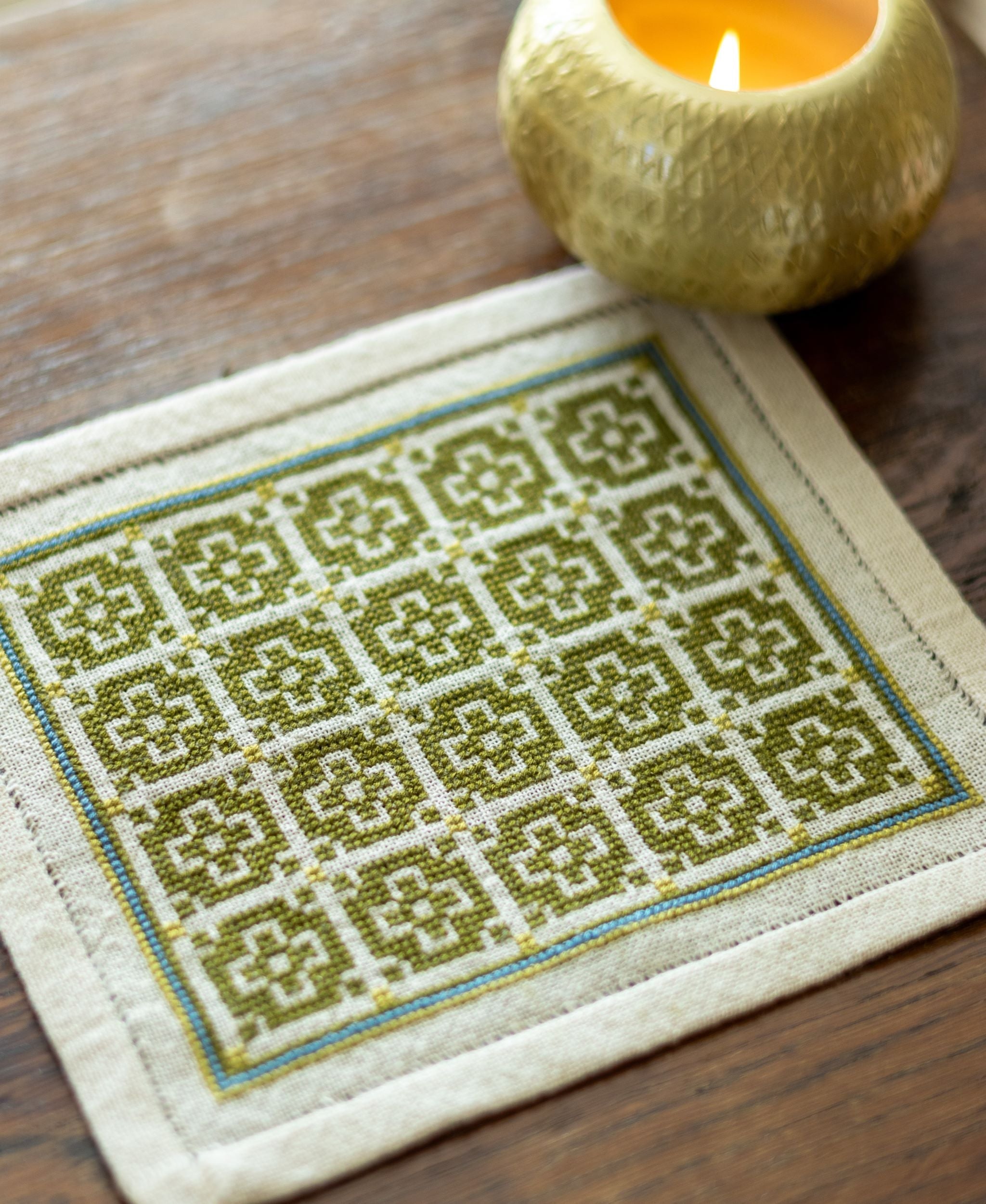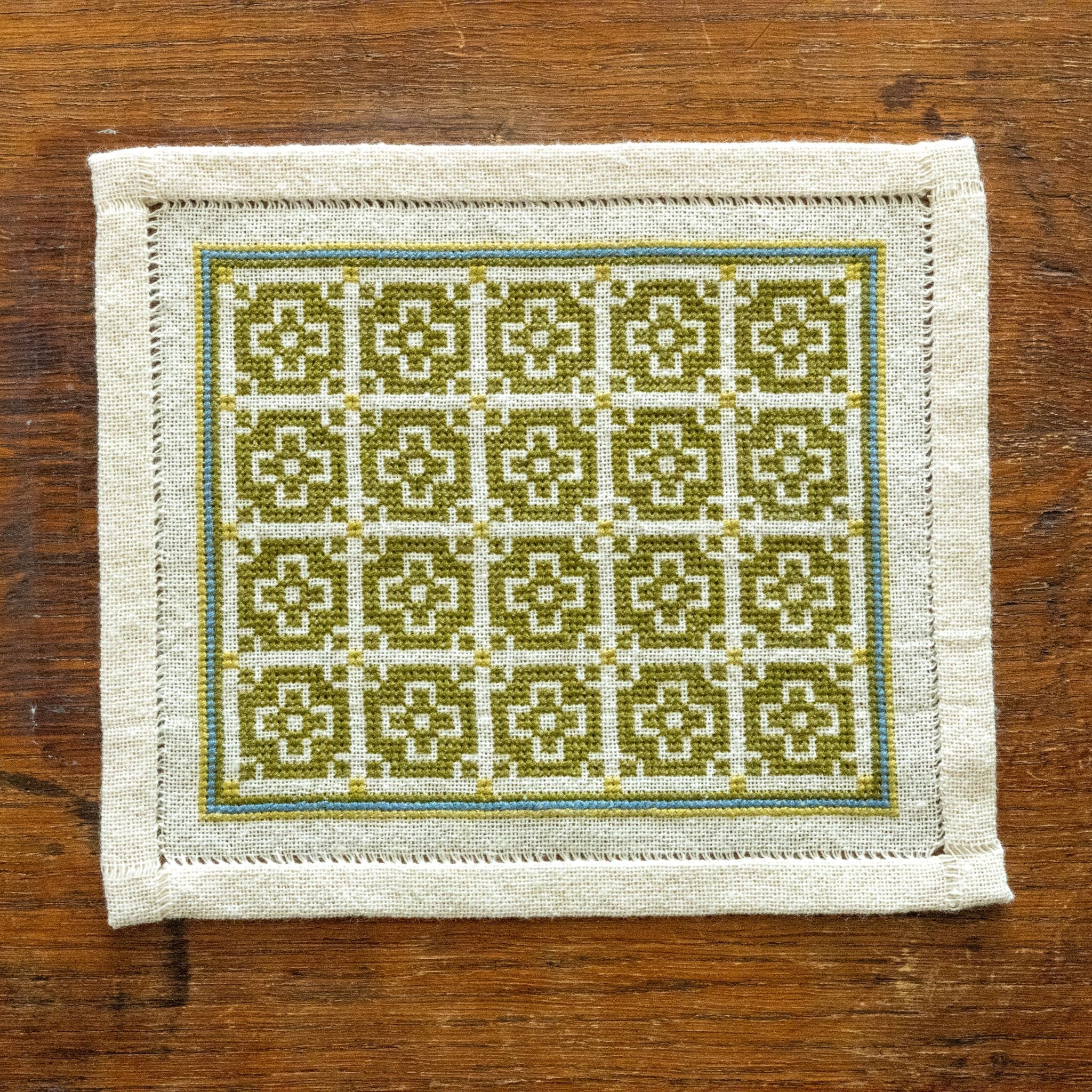 Throughout the Mediterranean world, geometric designs such as the one found in the BitKit Roman Mosaic folk embroidery kit have been used in many forms, from tile floors to weaving patterns to folk embroidery motifs. This rhythmic repetition of the motif worked in a two-tone color palette creates a design that is as stylish today as it was centuries ago. Kit includes: 26ct 100% cotton Traditional Groundcloth in natural, DMC 100% cotton embroidery floss, John James size 24 needle, full color charts and instructions.