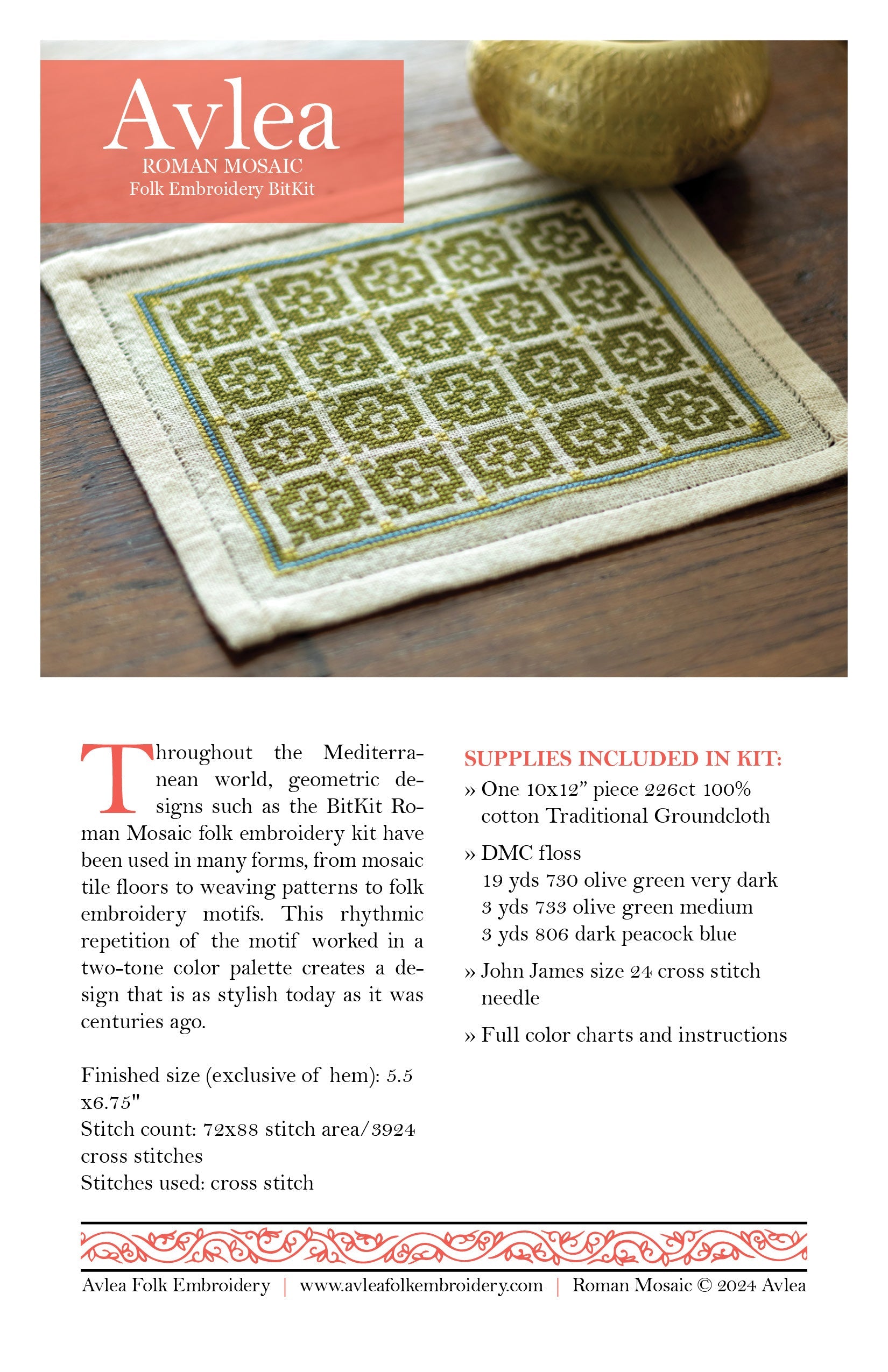 BitKit Roman Mosaic cross stitch folk embroidery kit