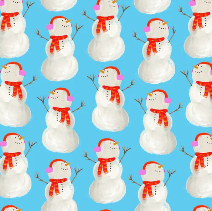 Adorable snowmen on a bright blue background from the A Swell Noel collection.