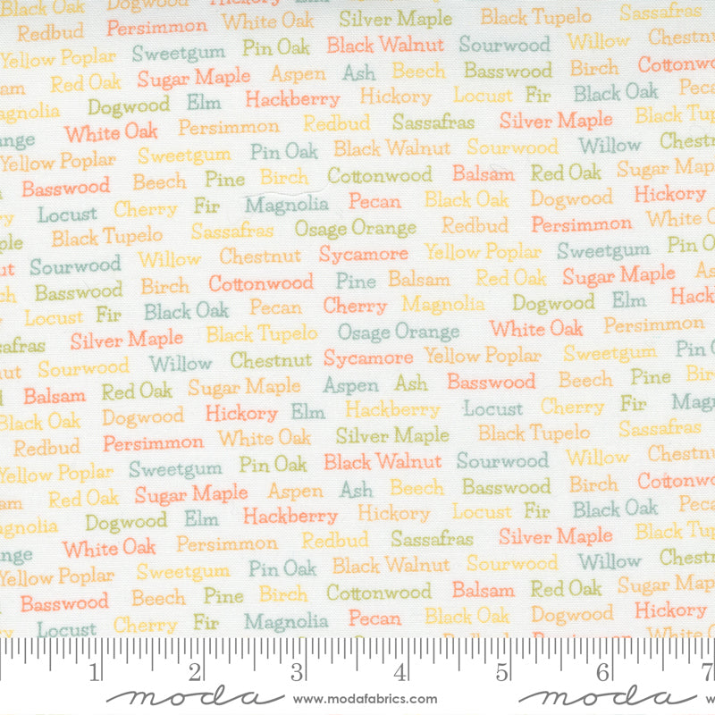 Cozy Up by Corey Yoder from Moda features flowers, gingham, words, berries, acorns and pin dot in shades of cloud, cinnamon, grey skies, blue skies, sunshine, moss, and more.