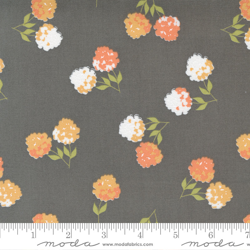 Cozy Up by Corey Yoder from Moda features flowers, gingham, words, berries, acorns and pin dot in shades of cloud, cinnamon, grey skies, blue skies, sunshine, moss, and more.