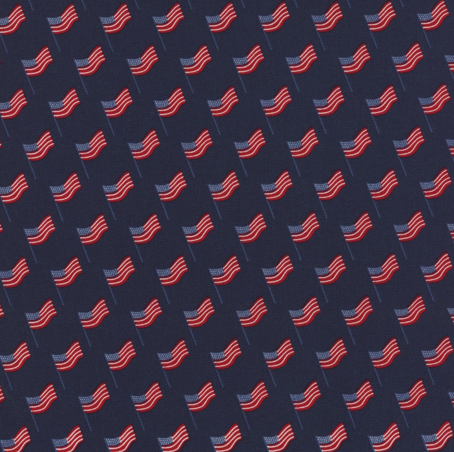 Get ready for summer with the Stars and Stripes Forever quilting fabric collection by Lori Whitlock for Riley Blake Designs! Show off your national pride with this navy fabric featuring rows of fluttering American flags.