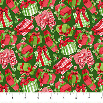 Vintage Christmas - DP28166-76 - Tossed Presents - DK Green Multi - by Deborah Edwards for Northcott Fabrics