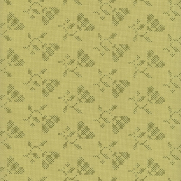Sunbonnet by Heather Briggs of My Sew Quilty Life for Moda Fabrics is a sweet and nostalgic quilting fabric collection that evokes a sense of timeless charm. Add stunning texture to your projects with this tonal pear green fabric featuring a floral cross-stitch print.