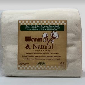 Warm & Natural is the finest needle-punched cotton batting! Only 15% of all cotton grown in the USA is the proper length, thickness and color. Out of this 15%, only 5% is clean enough for Warm & Natural! This soft, natural cotton has never been washed or bleached with harsh chemicals. It’s kinder to the environment and kinder to your batting. The cotton undergoes a mechanical cleaning process removing all of the seeds, seed coats, along with the majority of leaf and stem remnants. The remaining tiny plant particles lend a special look to crafts like no other and won’t harm your quilt.